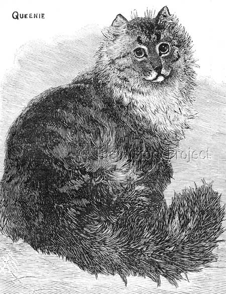HISTORICAL BACKGROUND:We find our first glimpse of 'Chloe' in the pages of Harrison Weir's classic work Our Cats, which was published in 1889. From this book we gain some of our best insights into the early history of a number of our most prominent breeds. This is particularly apparent within the foundations of the Silver Persian, or 'Chinchilla'. The images provided by his own hand, also give us our clearest indication of the qualities of some of the earliest Chinchilla cats, predominantly due to his exceptional eye for detail, coupled with his specialist knowledge of cats. His illustrations display far more accuracy than those from alternative sources, which so often appear to 'miss the mark' when it comes to the details that concern us most; namely type, coat, colour and pattern. This is clearly seen when we compare his imagery of cats such as 'Sylvie', 'Chloe', 'Dinah', 'Silver Lambkin 1', 'Silver Lambkin 2' and even 'Fez' for instance, as against the images of 'Fluffy II' and 'Queenie', by an alternative journalistic illustrator with no knowledge of the breeds. Both 'Chloe' and 'Dinah' were owned and exhibited by Miss Florence Moore, an experienced breeder and exhibitor of Silver Tabbies bred down from Mrs. Brydges noted cats, which were among some of the first long-haired cats imported into England2. 'Chloe', through her sire, was both a forerunner to, and relative of, the famous 'Ch. Silver Lambkin', both being grandchildren of 'Chinnie', the 'mother' of all Chinchilla's, owned by Mrs. Vallance. PARENTAGE & OWNERSHIP:'Chloe' was born on 30th April, 1887, (NCC: 1051), bred by Miss Florence Moore. Her sire was Mrs. Vallance's male, 'Fluffie II', himself a son of none other than the noted 'Chinnie' so well known to us today, as the 'Mother of the Chinchilla'; and from whom it is surmised, the clear coated silver Persian cat takes its name.