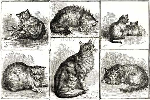 One can only imagine the wide-eyed amazement and curiosity that the sight of this cat show would have aroused in a highly intelligent and impressionable young cat-lover! And no doubt, this may have been her first public exposure to the curious world of naturalist exhibitions, organized and judged by the then 47 year old Harrison Weir. As a young girl growing up in the Victorian 1860's she would have had ample exposure to a varied diet of animal art by Weir, both in educational and children's books, animal rights publications and the myriad of popular press editions that hit the stands daily and weekly. Now she could attend an actual cat show, and gauge for herself, the amazing public response to this new phenomenon! As young and as alert and astute as she was, we can clearly imagine how she would picked up and shared in the surprise and excitement of the attending public and how intrigued she would have been by the amazing variety of cats, especially some of the very earliest Siamese, the Manx cats, the varied examples of Foreign longhairs and the first publicly exhibited Abyssinian. In addition to this, she would possibly have seen Harrison Weir, his brother John Jenner Weir, the Rev. J. Cumming Macdona and a host of other dignitaries, possibly including such as Lady Cust and Lady Nevill, all in attendance, both lauding and supporting Harrison Weir in his labour of love to bring attention to the world of cats.