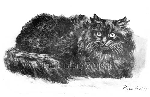 SOCIAL MEDIA :None currently available. In Summary: 'Champion Neptune' can claim the honour of being the first Black Persian male of distinction to be registered, to gain his Championship, and to have left a not insignificant number of progeny to promulgate both his colour and his breed. It is indeed fortunate that we have this image of him by Rosa Bebb, which illustrates a bold, clear eyed male, of significant bone and coat, who must have been a rather imposing figure in a show cage, when presented in top show condition. Mrs. McLaren Morrison continued to show a long-term interest in Blacks, just as she did with her Whites, for which she became justly famous. Even today, the breeder of Whites will, when desirous of producing a crystal clear bright white coat, turn to the best solid black male they can find, with colour sound to the root, to produce whites of spectacular gloss and shimmer. In time, the Blacks would come into their own, and with the benefit of hindsight we can only look back in admiration when we think of many great ones, such as Marjorie Bull's outstanding 'Ch Deebank Mascot' in the United Kingdom, who won Best Cat at the National Show at Olympia. Then across the 'herring pond' to such greats as 'GC Vel-Vene Voo-Doo of Silva-Wyte,' (1959 Cat of The Year), and to cats which were great producers, such as 'GC Misty Mornin' Conquest', and 'GC Lullaby Abracadabra', (to mention but only a few), all of whom, have had an incalculable influence on the continued development of the Persian breed. Today, 'Blacks' rank among the very best, and are a wonderful reminder of how far the Persian has come from the days when 'Neptune' carried the flag on behalf of this colour variety. 'Black' is certainly 'Beautiful' and we are again reminded of the words of Harrison Weir, who stated: "But, for all this, their admirers are by no means few; and, to my thinking, a jet-black cat, fine and glossy in fur and elegantly formed, certainly has its attractions."4 REFERENCES: