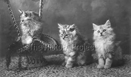 Of 'Puck's' show wins, information is scarce, although in his stud advertisement we are formally advised that he is a high prize-winner. None are recorded in The Cat Club Register, nor in The Book of The Cat, but it is highly likely that he did in fact take out a number of respectable and highly sought-after wins in the Silver Division at shows, given that we are told his prize cards are displayed inside the living room of his stud quarters! Regardless, his photo shows us that he is indeed a handsome fellow, who continued to pass on his good looks to his progeny, proof of which is provided in the female 'Venus', whose kitten wins are recorded, as well as her fine photo by Russell & Sons, of Windsor. BREEDING & PROGENY: