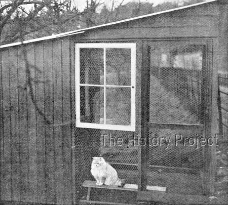 The Princess was indeed fortunate to have a supportive and understanding family, with a sister who shared her passion for the feline hobby and a father in HRH Prince Christian of Denmark, who gave his support in a more practical manner. On the occasion of her birthday, he presented her with a custom-made stud house designed by himself, which consisted of a bedroom, a living room, an outer run and separate compartments.2 This happy event was also reported in the 25th April, 1903 issue of 'Our Cats', as follows: - "H.R.H.Prince Christian has given Princess Victoria, as a birthday present, a lovely cat house for 'Puck'. It has two rooms, a bedroom and a living room. In the latter there is a nice large window and a red figured blind, with broad cream lace at the bottom, and a red tassel, which greatly pleases Master Puck. He is very proud of his new house and run, and in his sitting room are hung up all his prize cards and also his photographs and those of his children. Imp is expecting a litter by Puck this week."5