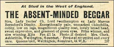 SOCIAL MEDIA :Although none are available at the time of writing for 'Silver Charm', the following are stud advertisements for her two dam-siblings, 'The Absent-Minded Beggar' and 'Puck III'.
