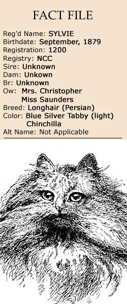 Born in 1879, to some extent at least, Sylvie has been largely overlooked as the 'genesis' of the desire to create the erroneously named 'Self-Silver', or a silver cat without tabby marks or barring, which eventually developed into what became the modern day Chinchilla.