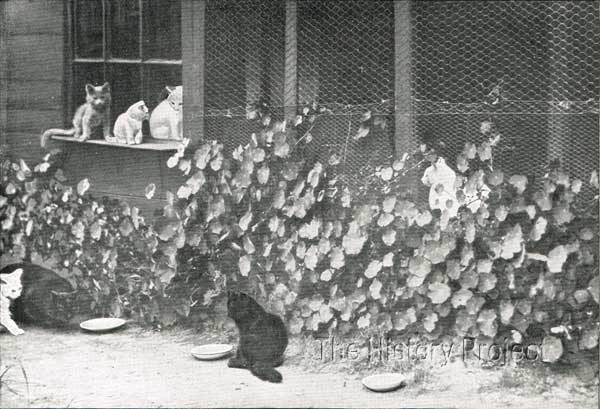 In a brief but revealing snippet written by Miss Frances Simpson in her chapter on Whites from The Book of The Cat, she gives a short account of the well-known prize-winners among White Persian stud cats of the day: "Miss Harper's 'Blue-eyed Wanderer' has great quality and lovely texture of coat. He was in truth a wanderer in the streets of a London suburb, and, although labelled 'breeder and pedigree unknown,' he has almost always held his own in the white classes at our largest shows."12 Evidence of his subsequent transfer to his new owner Miss Ellen Harper is found in the 22nd December 1900 edition of 'Our Cats', which reports: "Miss Harper has bought The Blue-Eyed Wanderer, that superb white, from Mrs. Grey. He is healthy and in good fettle just now, and his present owner having placed him at stud in our columns, is looking forward to A1 kittens, with balls of snow and sapphire eyes."12 Miss Ellen Harper, was already well-established in the cat world before she took on White Persians. She began around 1891 and had previously taken a specialty interest in white shorthairs with blue eyes, and had carried off numerous prizes with these from the Crystal Palace with charming specimens of that variety. She then broadened her horizons and took on longhairs, again specialising in mainly whites. From a Who's Who in the Cat World listing published in May 1901, we find a list of some of the well-known cats she had bred, which included'Pharoah II', 'III', and 'V', 'White Bundle', 'Syringa', 'Crystal Chat Blanc', 'Cherub Queenie', 'Pansy Khedive', 'Blue Waterloo II', and 'III' (all White!).13 One of her earlier stud males with a high profile as a third-tier foundation cat was her Blue, 'Waterloo' who was never shown due to having an injury to his ear. Having formerly resided in Brighton, she had moved to Hayward's Heath where she was the philanthropic proprietor of a Home for Cats. Her intense sympathy with cats, and her lengthy experiences of their ways and their ailments, made her Cat's Home extremely popular among the fanciers and owners of cats in the south.