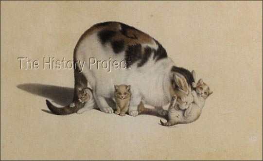 MOTHER CAT & KITTENS, by Gottfried Mind, circa 1790's