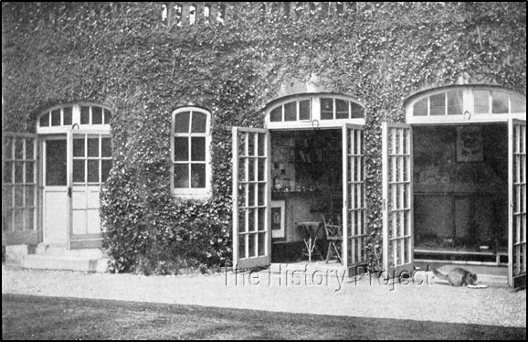 Of her owner, Miss Jay; Frances Simpson makes the following observations: "Miss Gertrude Jay started cats in 1891 and her name will always be connected with blues. Nothing has ever been exhibited to compare with her wonderful female, 'The Mighty Atom', as regards beauty and shape of head. This cat, now, alas! no more, swept the board wherever it was shown. Twice she carried out the highest honours for Best Cat in the Show at the Crystal Palace. It is true that this grand specimen lacked the orange eyes, but no judge could pass over such a perfect type of cat, despite her one fault, and thus 'The Mighty Atom' reigned supreme. 'Trixie' and 'Doris', two of Miss Jay's noted blues, have also both won Specials for the Best Cat in the Show, at the Crystal Palace. Miss Jay is fortunate in having some descendants of these precious cats in the luxurious catteries at 'Holmwood' (of which an illustration is given). Many lovely blues may be seen revelling in the well-appointed houses set apart at the end of the long terrace for their special use. Miss Jay, about a year ago retired from the cat fancy, and withdrew her name from the two (Ed: national) clubs; but she is still a Vice-President of the Blue Persian Cat Society, and often acts as judge. Her name always draws a good entry, and, as a well-known fancier once remarked to me, 'You can be sure of getting your money's worth, when Miss Jay has the handling of the classes'."