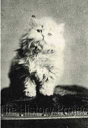 HISTORICAL BACKGROUND:Kew Laddie was one of the very first Cream Persians bred in England to make a significant impact on the Persian show scene in the United States. The earliest creams were generally referred to as "Fawns" and were most often the result of breeding a Blue male to a Tortie, the subsequent Cream progeny being only males. The colour was generally 'hot' and uneven. When Cream males were retained as studs, and bred to both Blue and Blue-cream females, paler more even coats resulted and in the case of Cream to Blue-cream, or Cream to Tortie, Cream females were produced. The rarity of Cream females was due to the fact that in those days, the genetics of the sex-linked "o" gene was not understood, and hence the misunderstanding of why Torties were almost always female, and the futile rage to keep and attempt to perpetuate the existence of Tortie males. The aim, was to breed pale, unmarked Creams, with little or no hint of tabby barring and free of any white spotting. Among the earliest breeders of Creams of note was the famous Romaldkirk Cattery of the Misses Beal, from which came a notable litter containing two remarkable early males, who made an immense mark on establishing the Cream as a recognized and sought-after colour variety. These were namely Romaldkirk Admiral and Romaldkirk Midshipmite (1896), who were never known to be shown in anything but superb coat and condition, becoming commonly referred to as 'The Heavenly Twins'. On the colour of Creams and the difficulties of breeding cats of sound colour, the following notes are from the renowned breeder and judge of Cream Persians, Mr Frank Norris (of Kew Cattery): "Cream cats are of a modern colour in Persians, but are now being more freely bred and finding numerous supporters. There are however, very few good ones in the fancy, for size, and colour are difficult to obtain. The great failing with them is that, although they are called cream cats, the best and soundest coloured ones are really of a fawn shade. So many show markings, patches, or shadings, whereas the colour should be one shade and sound throughout; better to be a little dark in colour rather than shade from cream to white, as is the case with so many specimens exhibited.1 " PARENTAGE & OWNERSHIP:Mrs. Frank Norris of "Kew" cattery fame, came into possession of one rare Cream female, initially bred by Mrs. Milner in 1899, from a pairing of 'Ch.Romaldkirk Admiral (1896)' and 'Sister'. This female was 'Crème d'Or', who had formerly been owned by Mrs Wellbye. This queen had developed a reputation for being difficult to breed, being inclined to refuse to enter into any sort of matrimonial alliance for some time. But her new owner persevered, and eventually succeeded in breeding her to Mrs Ransome's noted Blue Persian male, 'Darius' (a grandson of Ch.Bundle). The result, included a new latter generation of 'heavenly twins' in the form of the males 'Kew Laddie' and 'Kew Ronald'.
