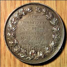 Mr. Hill, whose registered prefix was 'SIAMESE', competed regularly at the Crystal Palace National Show, and on two successive years in 1892 and 1893, won the Special for the 'Best Two Kittens'. Unfortunately the names of the first winning pair are not recorded, as they do not appear in the National Cat Club register, but it seems likely that they would have been older siblings to the pair which won in 1893. For that win, there are in fact four contenders, all showing in Volume Two of the National Cat Club Stud Book and Register, born in one litter on 16th August 1893. They were sired by Mrs. Hill's imported Siamese male 'SIAM I' and out of his imported Siamese queen 'SIAMESE CHEETAH'. They were: