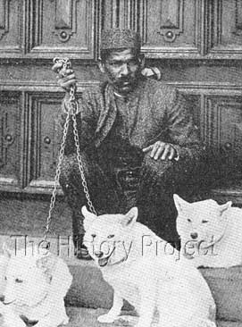 As well as the afore-mentioned breeds, Mrs. McLaren Morrison also had Icelandic or Lapland dogs, her fashionable passion for 'white' in both canine and feline species being prominently apparent. But to care for the many dogs and cats, and to agent them successfully at shows throughout England while she and her husband were abroad, she employed an Indian born kennel-man named Succo, whose image has been captured with favourites of both her representative species.