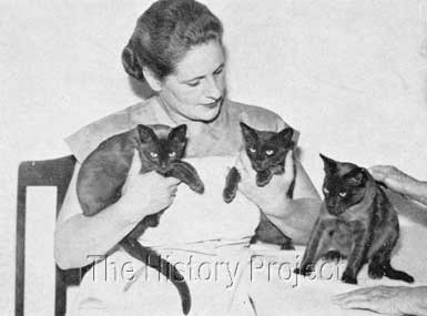 'Buru Kaihau' was born on 26th April 1956, sired by Mr. and Mrs. Watson's 'Casa Gatos Da Foong' and out of Dr. and Mrs. Groom's queen, 'Lamont Oonagh'. Her dam, was sired by 'Casa Gatos Darkee' so in 'Buru Kaihau' the lines of both males were combined. 'Buru Kaihau' was in fact line-bred upon her sire 'Da Foong' as her maternal grand-dam 'Trinity Tatiana' was from a half-brother to half-sister mating, both parents being sired by 'Da Foong'.