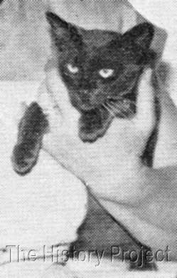 A litter brother to 'Paquita', named 'Tomahawk', was originally retained by Miss Dunn, but later sold to a syndicate in Australia. Grace Burgess gives us further insight into this sire-sibling of 'Buru Kaihau': "Miss Dunn had already sent one of the first Burmese (Paquita) to New Zealand but had kept her litter-brother Tomahawk for the English show season. At this time it was not compulsory in the United Kingdom to use a prefix and I understand Miss Dunn preferred to keep the use of her prefix for the progeny of cats of her own breeding. This season had proved very successful for Tomahawk as he was only one point behind the winner of a points cup awarded for the most successful Burmese kitten of the year."2 Eventually however Miss Dunn let it be known to her contacts in Australia that 'Tomahawk' was available for purchase. A syndicate of four breeders was formed and in due course, 'Tomahawk' arrived in Sydney in August 1957, aged 14 months2. Shows: