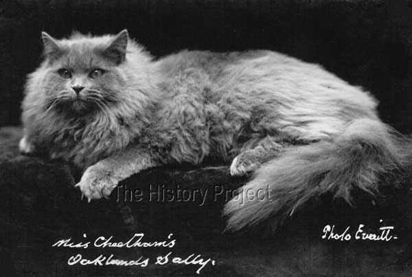 HISTORICAL BACKGROUND:A very promising female as attested to by her beautiful photograph. We would not know anything about 'Oaklands Sally' if her short life had not been recorded by her owner in her Cattery records, as to date, no trace of her has yet been found in any Register. From her owner's estate, we have the precious photographs by Crystal Palace Photographer, T.H.Everitt. We know only of her wins at the Halifax Show of 23rd November 19111, before her untimely demise on December 30th that same year1, from the effects of the dreaded 'show fever'. However, her wide head and pleasant countenance appealed to such a degree, that we felt duty bound to choose her to represent the "clubs" in the banner on the homepage for that feature of this site, as well as on the navigation button for "clubs" shown at left. PARENTAGE & OWNERSHIP:Oaklands Sally was born on 19th April, 1911, bred by Mrs H.M.Hall. Her sire was the Blue Persian male, 'The Catch Of The Season'(c1906), himself a son of Ch.Kew Blue San Toy II (doubling on Eng.Ch.Patrick Blue).Her dam was the Blue Persian female, 'Thorntree Beauty'.(of which there is currently no concurring record). And given her obvious qualities, she was purchased by Miss Gladys Cheetham for the very reasonable sum of £10.0.0(Ten Pounds)1.
