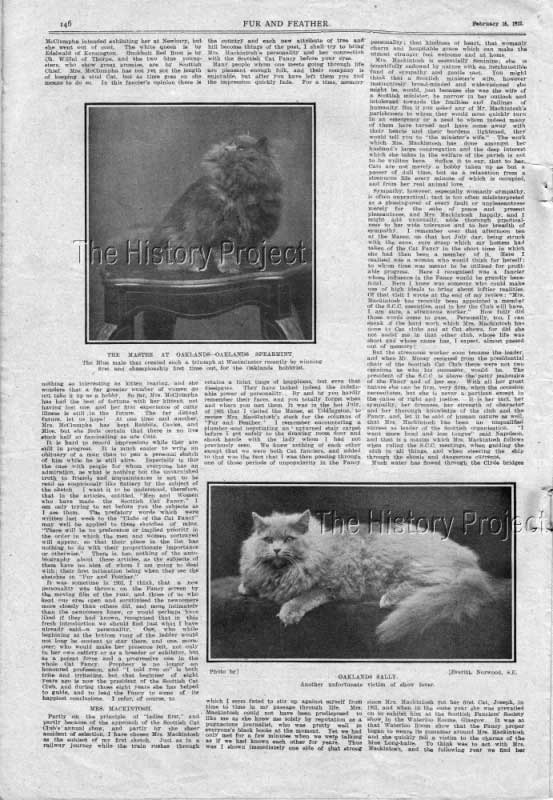 BREEDING & PROGENY:Passing at the tender age of 8 months, 'Sally' was unfortunately too young to have been bred. It is a testament to her owner's great care, in feeding and grooming, when analysing the lovely photo of 'Sally' that she could look so mature and in such great condition in the photo, in which she cannot in all probability have been more than seven months old. It highlights the great risks taken when showing young cats and kittens at a time when there were no vaccinations or antibiotics available to counter the threat of disease and distemper. We can only imagine the heartbreak of such tragic losses. PHOTOS: