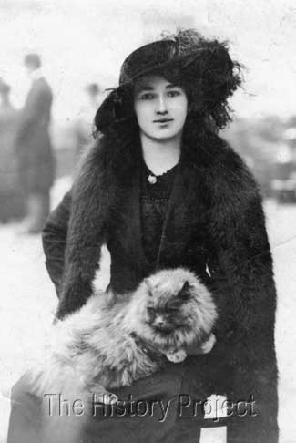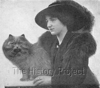 | Miss Gladys Cheetham with her young Blue Persian female, Ch.Oaklands Sceptre.