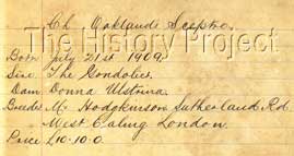 Left: Record of the parentage and purchase of Oaklands Sceptre.