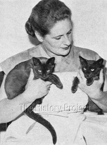 "Miss Dunn had already sent one of the first Burmese (Paquita) to New Zealand but had kept her litter-brother Tomahawk for the English show season. At this time it was not compulsory in the United Kingdom to use a prefix and I understand Miss Dunn preferred to keep the use of her prefix for the progeny of cats of her own breeding. This season had proved very successful for Tomahawk as he was only one point behind the winner of a points cup awarded for the most successful Burmese kitten of the year."2 Eventually however Miss Dunn let it be known to her contacts in Australia that 'Tomahawk' was available for purchase. A syndicate of four breeders was formed and in due course, 'Tomahawk' arrived in Sydney in August 1957, aged 14 months.2