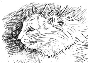 HISTORICAL BACKGROUND:White Persian cats held sway amongst long-haired varieties at Crystal Palace Cat Shows for many years, and were usually only defeated by the increasingly-popular Chinchillas and or the Blues as those colours separately rose to prominence. So it was not unusual to see a White long-hair taking top honours of show. A well-presented white is spectacular to behold and even to this day, they bring the 'wow' factor to the show bench, particularly when immaculately presented by an expert groomer. Three white males in particular, contributed extensively to the rise of the White Persian in England and the United States. These were namely Mrs. White Atkin's 'White Knight', Miss Hunt and Mrs. Finnie Young's 'White Friar' (formerly Tim of Redgrave), and Mrs. Pettit's own 'King of the Pearls'. All three, sired a wealth of blue-eyed white offspring as breeders sought to capitalise on the 'wow' factor that these blue-eyed beauties brought to the show bench. Accordingly blue-eyed whites were sold and exported at an ever increasing rate as breeders on both sides of the Atlantic sought to secure the best of these bloodlines, as and when, they became available. In her Cats and All About Them published in 1902, Frances Simpson gives this opinion of the White Persian Cat, and separately, a glowing recommendation for 'Piquante Pearl': "A White Persian Cat, with correct blue eyes, in full coat and spotlessly clean, is indeed a 'thing of beauty,' but let no one try to keep one of this breed unless they live in the country. A white cat soiled is a white cat spoiled, and I have known a famous prize-winner put down by a judge on account of its dirty condition."2 Then in the chapter specifically on Whites in The Book of The Cat (1903) she says of the blue eyes: "....no colour is so completely in accord with the purity of the coat, as eyes of heavenly blue. The tone should not be so much of a sapphire, as of a deep forget-me-not blue."2