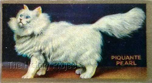 In Summary: 'Piquante Pearl' was the show cat that fairly set the star of Mrs. Eugene Pettit's breeding reputation in the firmament of fame, for white long-hairs. 'Beautiful Pearl' led the initial charge, and 'Piquante Pearl' sealed the deal! From that point forward, Mrs. Pettit enjoyed an enviable record of success. It should be noted that she was very careful with her breeding stock, retaining several females from some litters and not reducing until they had bred successfully. In this way she insured her program against failures and against the risks of loss, which in the day, were very real indeed. That she was able to manage to keep so many white longhairs in such beautiful condition, is a testament to her organisational ability and her personal industry. We can learn two very important lessons from her example: - don't keep them unless you can look after them - and don't sell them just because you can! REFERENCES:
