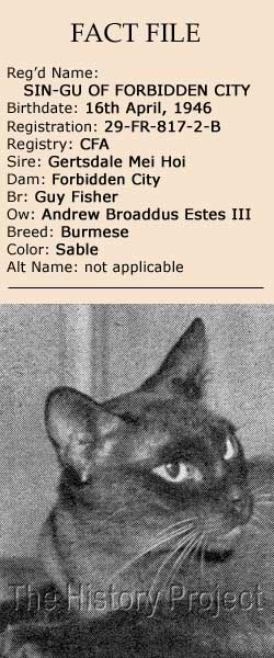 Registers associated with this article include The Incorporated Cat Fanciers Association of Great Britain (TICFAGB), National Cat Club (NCC), The Cat Club (CCR), Beresford Cat Club (BCC), Feline Federation Francaise (FFF), Siamese Cat Registry (SCR), US Register & Studbook for Cats (USR)including Supplement(USRS), The Studbook of the American Cat Association (ACA), and the Studbook & Register of the Cat Fanciers' Association (CFA).