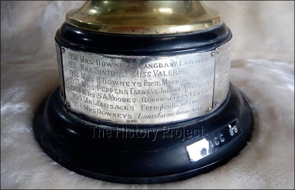 The Auckland Cat Club was New Zealand's first registered Club, incorporated in 1949 and affiliated with the NZGCCF (Founded 1930). Before this date, it used to hold shows in conjunction with the loosely convened NZ Pekingese & Persian Cat Club dating from 1930. In the NZGCCF Stud-book Volume 1, covering the period September 4, 1930 through to December 31, 1951, can be found numerous entries for cats born as far back as the 1920's. Many of these were bred from cats originally imported from England or Australia; an example of which includes the Blue Persian males 'Prince Leo' (Imp. Eng) (#35), born October 3, 1922. Later imports included 'Carlton Blue Radiance' (Imp. Aust) (#475) born November 10, 1949; 'Royal of Pensford' (Imp. Eng) (#888) born May 12, 1951 and 'Merryman of Dunesk' (Imp.Eng) (#1000) born December 1951. This specific trophy was donated in 1950 by one of the Clubs founding members, Mrs. E.M. Baggott, whom we find in the same Stud Book, as the breeder of the 'Malvern' cats, including the blue queen 'Malvern Jewel' (#218) born November 23, 1933; and her sire: 'Ch. Malvern Victor' (#21) born in 1925, bred by Mrs. Moss of Christchurch, but owned by Mrs. Baggott and exhibited by her, between 1930 and 1933. So in essence she was one of the oldest and experienced breeders still living at the time that the club became an Incorporated Society in 1949.